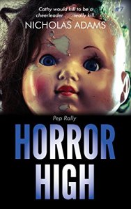 That’s the cover blurb for Pep Rally, #7 in the Horror High series by “Nicholas Adams,” and literally nothing in it, starting with the protagonist’s name, appeared in the novel. There was no pep rally at any time. Only one cheerleader got killed. For that matter, the book’s actual title was Booster Club.